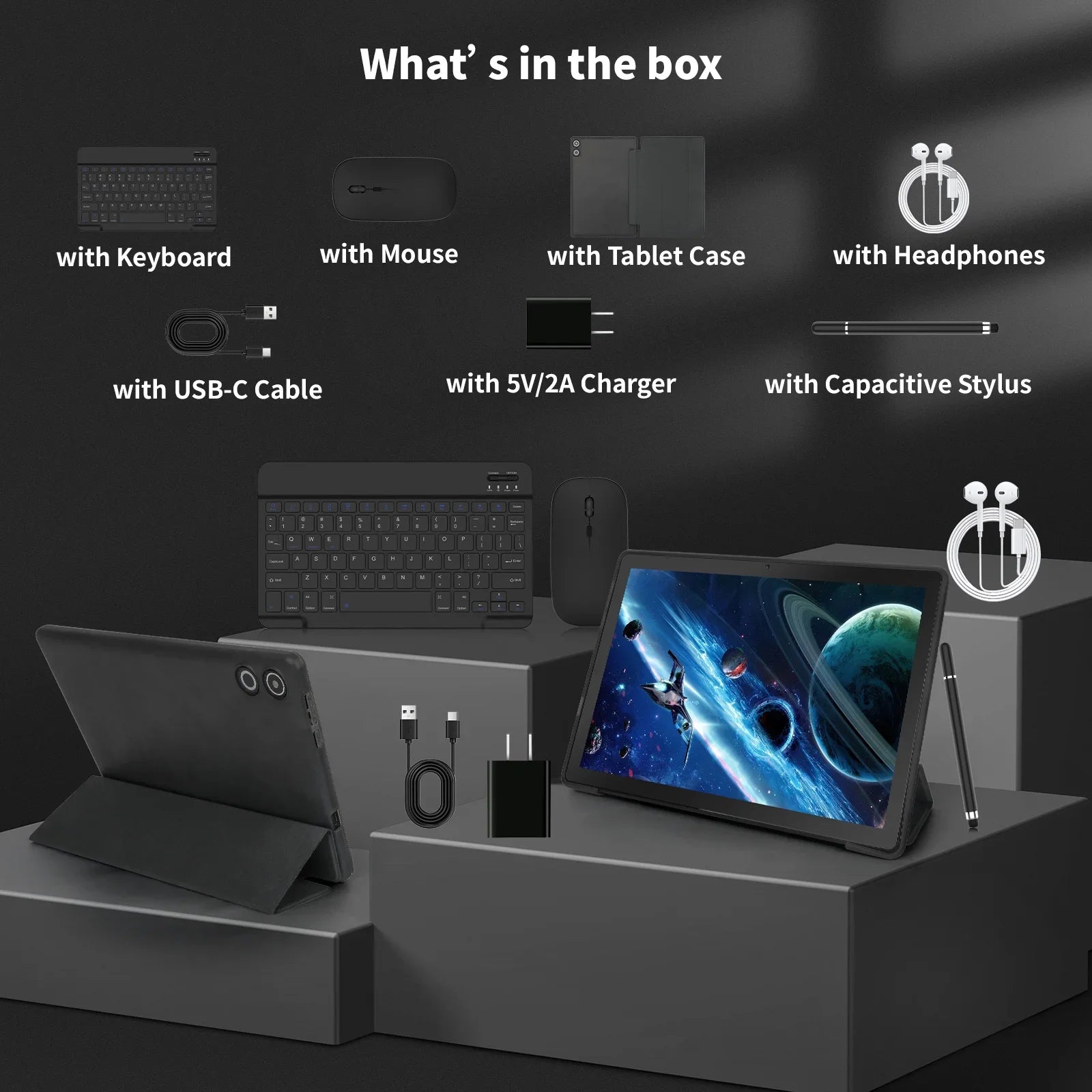 Android 14 10 inch Tablet, Face Unlocked,Keyboard & Mouse Set,